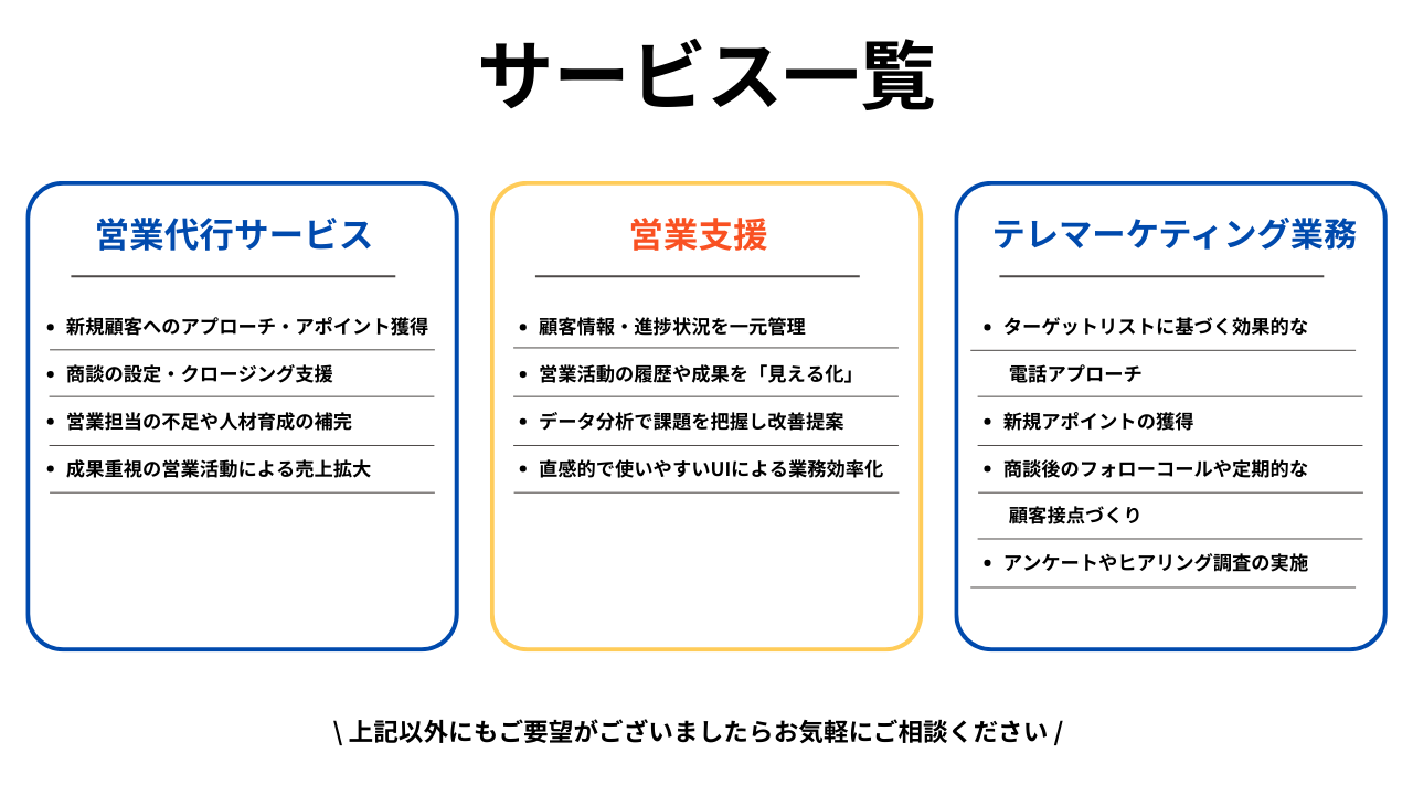 ・新規顧客開拓からアポイント獲得、商談対応までを一括サポート
